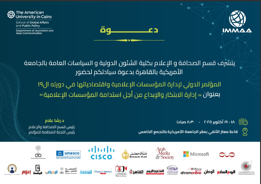 تستعد الجامعة الأمريكية بالقاهرة، إطلاق فعاليات المؤتمر السنوي التاسع عشر لـ الرابطة الأكاديمية الدولية لإدارة الإعلام لعام 2025، وذلك تحت عنوان “إدارة الابتكار والإبداع من أجل استدامة المؤسسات الإعلامية” الذي يستضيفه قسم الصحافة والإعلام بكلية الشئون الدولية والسياسات العامة بالجامعة الأمريكية بالقاهرة يومي السبت والأحد 18 و 19 أكتوبر، الساعة 8 صباحاً بقاعة معتز الألفي، حرم الجامعة الأمريكية بالقاهرة الجديدة. ُيعقد هذا الحدث الإعلامي العالمي رفيع المستوى للمرة الأولى في مصر، بمشاركة نخبة من الأكاديميين والمتخصصين وقادة المؤسسات الإعلامية من مختلف أنحاء العالم، لمناقشة التحديات الإدارية والاقتصادية التي تواجه المؤسسات الإعلامية في مصر وعلى الصعيد العالمي، واستكشاف الحلول المبتكرة وأفضل الممارسات الداعمة لاستدامة قطاع الإعلام. يأتي انعقاد المؤتمر، الذي ترأسه الدكتورة رشا علام، أستاذ مشارك ورئيس قسم الصحافة والإعلام بالجامعة الأمريكية بالقاهرة، في ظل تسارع الأسواق الرقمية وتطور الذكاء الاصطناعي بوتيرة غير مسبوقة، مما يفرض على المديرين الاستراتيجيين إعادة التفكير في التوجهات الإدارية والممارسات والهياكل المؤسسية، لضمان نجاح المؤسسات الإعلامية في مواجهة التحولات العميقة التي يشهدها قطاع الإعلام حاليا، وفقا لبيان الجامعة الأمريكية بالقاهرة. ويعتبر هذا المؤتمر من أبرز وأهم الفعاليات الدولية في مجال إدارة الإعلام، حيث يجتمع فيه نخبة من الخبراء والمتخصصين من مختلف أنحاء العالم لمناقشة أحدث الاتجاهات والتحديات في هذا القطاع الحيوي. ويهدف المؤتمر إلى توفير منصة لتبادل المعرفة والخبرات بين المختصين والإعلاميين، من خلال جلسات حوارية وورش عمل ومحاضرات علمية تسهم في تعزيز الدور المحوري للإعلام في المجتمع المعاصر. كما يمثل فرصة متميزة لتسليط الضوء على الابتكارات والتطورات في مجال إدارة المؤسسات الإعلامية واقتصادياتها، بما يُثري المجتمعين المهني والأكاديمي على حد سواء. كما سيناقش المؤتمر مجموعة واسعة من الموضوعات، من بينها: التحوّلات الرقمية في الإعلام، وتغيّر أنماط استهلاك الجمهور، وتأثير السياسات والأطر التنظيمية على أداء وسائل الإعلام، وتطورات الإعلان والتسويق وبناء العلامة التجارية، والمقاربات الحديثة في تدريس إدارة الإعلام واقتصادياته، والاعتبارات الأخلاقية والمسؤولية المجتمعية في استخدام الذكاء الاصطناعي، والاستراتيجيات المالية لتطوير الإعلام، ودور الإدارة الإبداعية وإنتاج المحتوى كأصول استراتيجية داخل المؤسسات الإعلامية. من جانبها أكدت الدكتورة رشا علام، رئيس اللجنة المنظمة للمؤتمر ورئيس قسم الصحافة والإعلام بالجامعة الأمريكية بالقاهرة ان المؤتمر يُعدّ فرصة فريدة ورائعة، إذ يعتبر الحدث الأول من نوعه الذي يجمع بين الأكاديميين ، والمهنيين لمناقشة التحديات الإدارية والاقتصادية للمؤسسات الإعلامية. فلا يمكن دراسة قضايا ادارة واقتصاديات المؤسسات الإعلامية بمعزل عن خبرات أهل المهنة وتحدياتهم اليومية، كما أنّ المهنيين أنفسهم بحاجة إلى الاستفادة من تطورات الفكر الإداري ونظرياته الحديثة، وتطور النماذج الربحية، بما يسهم في بناء إدارة رشيدة ورشيقة للمؤسسات الإعلامية. المتحدثون الرئيسيون في الجلسات العامة هم: أحمد المسلماني، رئيس الهيئة الوطنية للإعلام في مصر؛ والدكتور جريجوري إف. لو، رئيس الرابطة الأكاديمية الدولية لإدارة الإعلام وأستاذ ومدير برنامج التعليم التنفيذي بجامعة نورث وسترن في قطر؛ والدكتور أحمد دلّال، رئيس الجامعة الأمريكية بالقاهرة؛ والدكتورة رشا علّام، أستاذ مشارك الصحافة والإعلام ورئيس قسم الصحافة والإعلام بالجامعة الأمريكية بالقاهرة. كما يشارك في الجلسات العامة عدد من المتحدثين البارزين، من بينهم:الدكتور تشارلي بيكيت، مدير مشروع Polis/LSE JournalismAI بكلية لندن للاقتصاد والعلوم السياسية؛ وإديسون تان