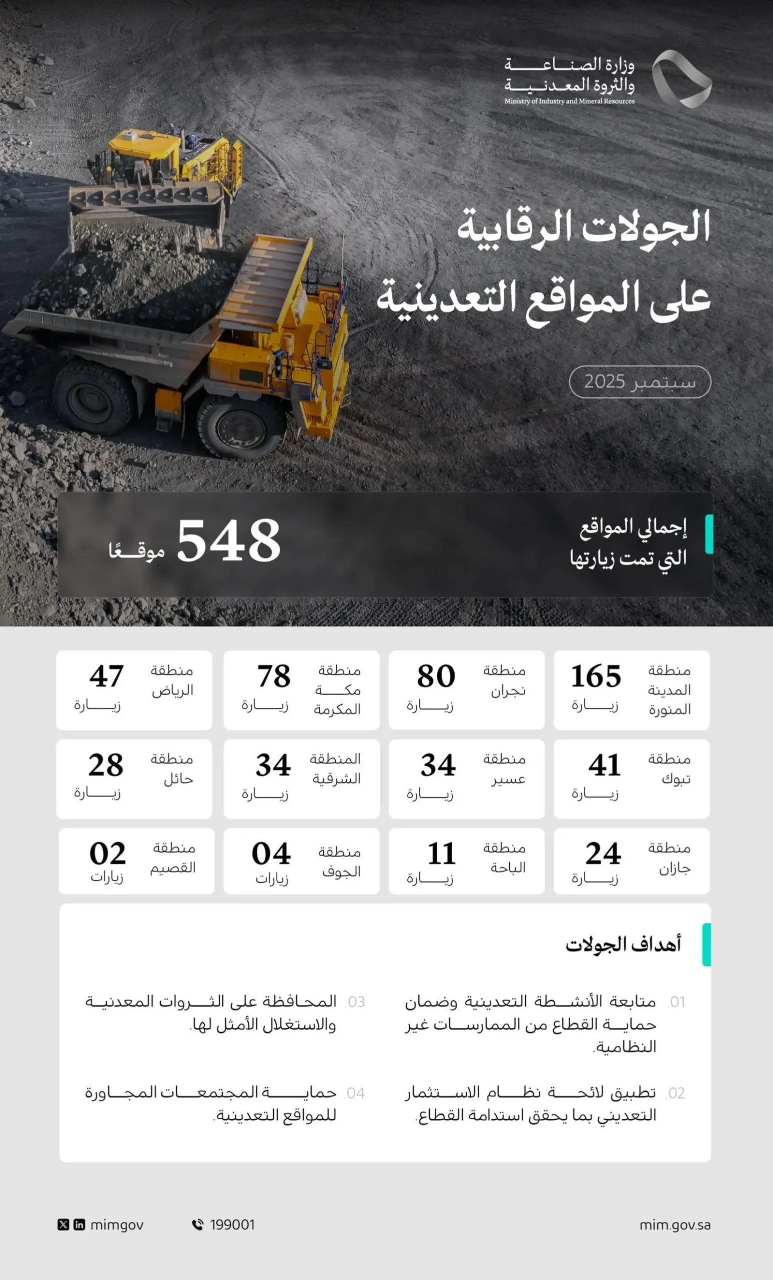 548 جولة رقابية على المواقع التعدينية بالسعودية